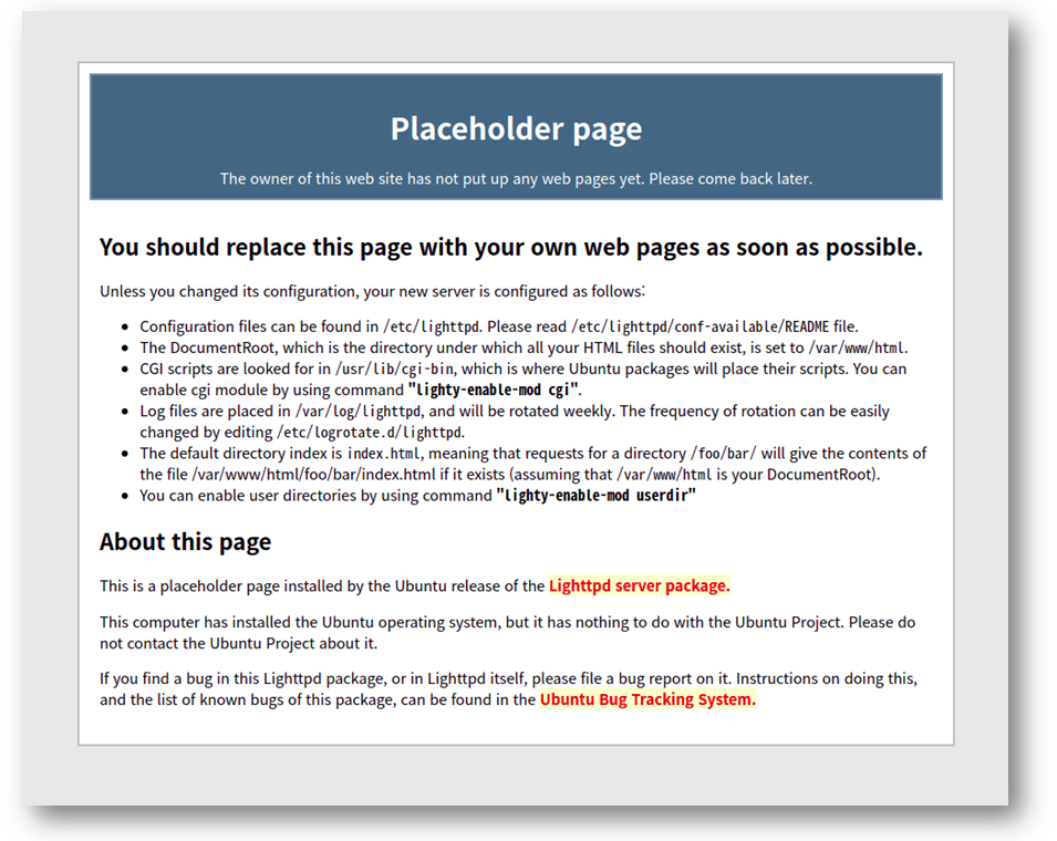 $ sudo apt install lighttpd lighttpd-doc