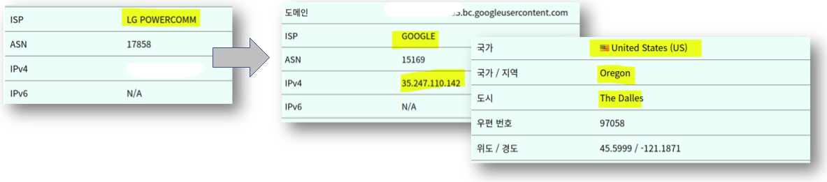 공인 IP를 확인할 수 있는 https://ko.infobyip.com/에 접속해서 접속 PC의 공인 IP 주소를 확인합니다. 네트워크 Proxy를 설정하는 경우에는 IP 가 미국 ( Oregon, Dalles)로 인식되고, Proxy server의 IP 주소로 인식되는 것을 확인할 수 있습니다.