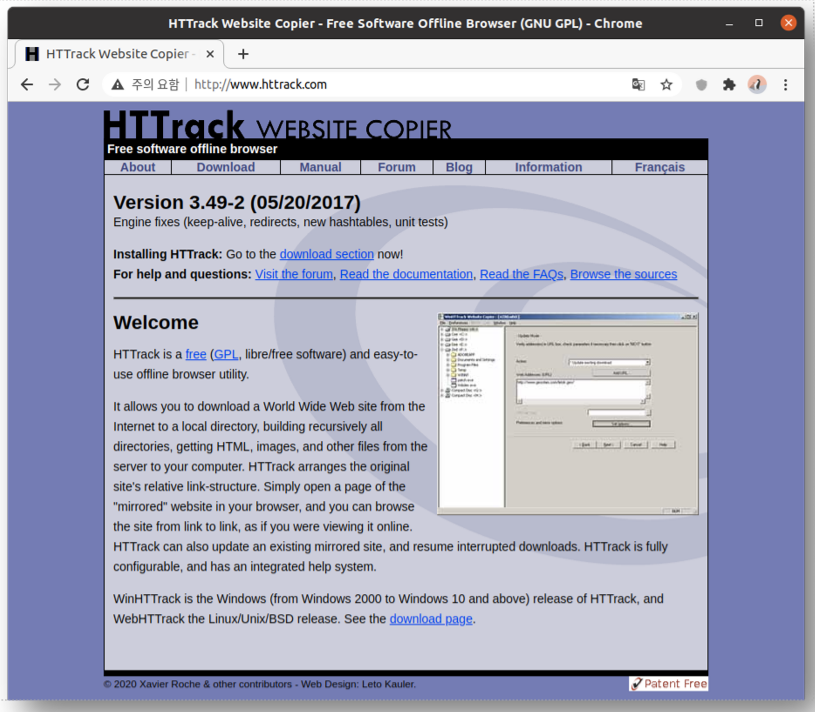 설치 파일 다운로드: httrack-3.49.2.exe