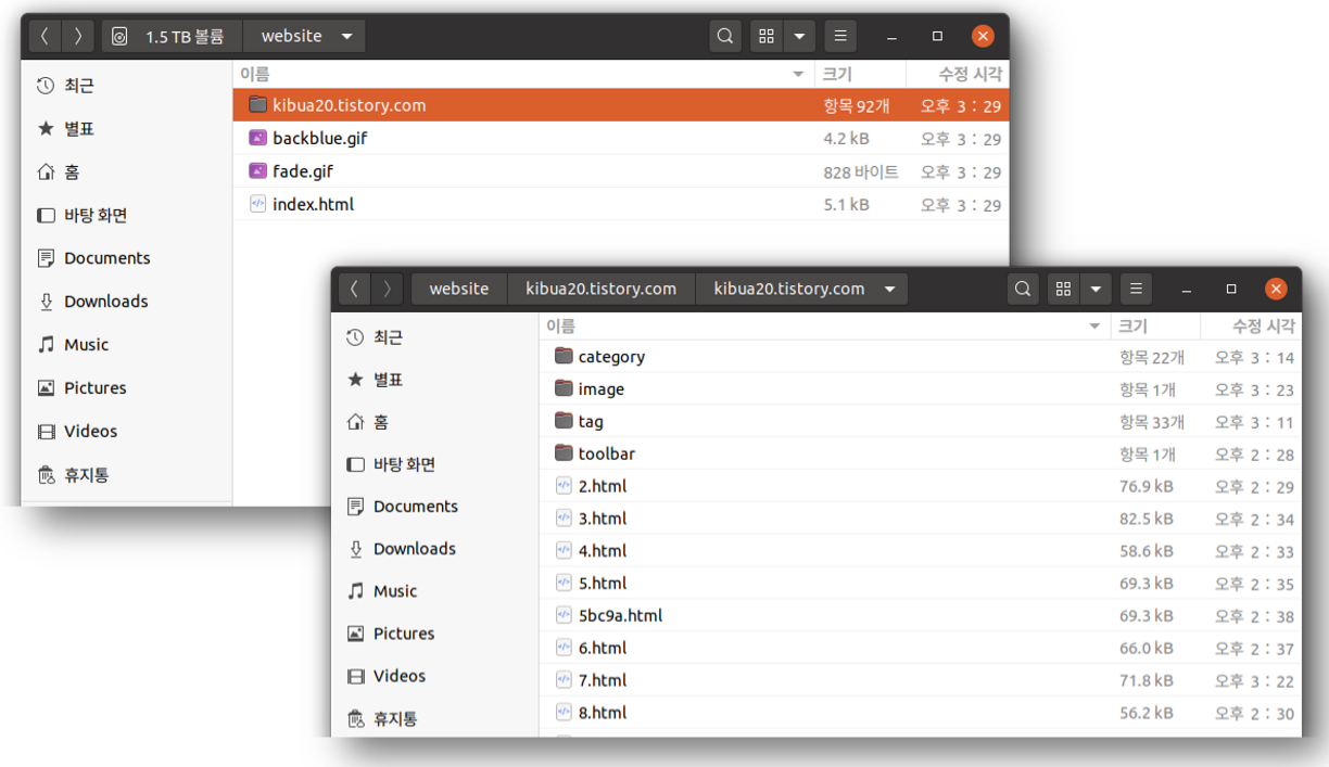 - 특정 웹 사이트를 이동하는 경우, 또는 웹 사이트 복제 가능 (저작권 주의)