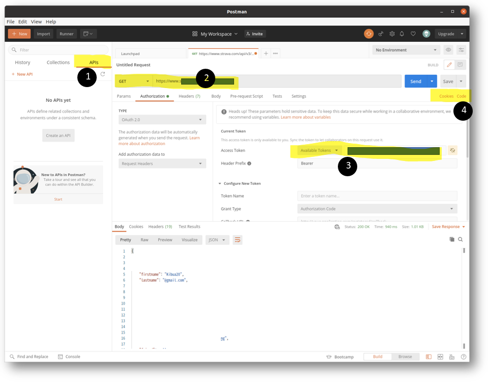 - Authorization에서 OAutho 2.0 선택 후 YOUR_ACCESSTOKEN 입력
