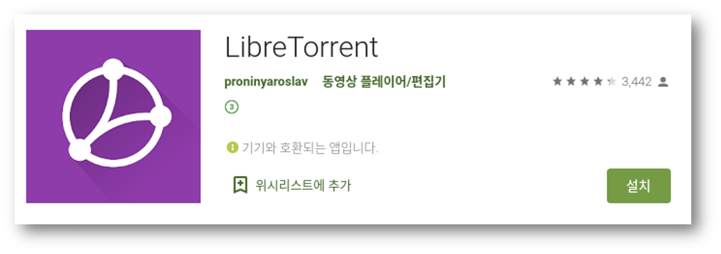 Android PlayStore play.google.com/store/apps/details?id=org.proninyaroslav.libretorrent 에서 직접 설치할 수 있습니다. 다른 앱 설치하는 것과 동일하게 앱 설치를 하면 어려움 없이 설치됩니다.
