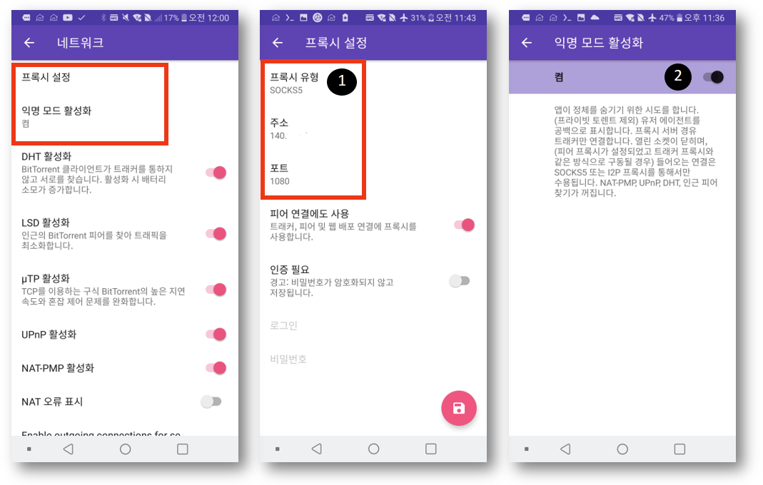 토렌트 클라이언트는 이전 포스팅에서 설명한 LibreTorrrent 기준이며, 다른 대부분의 토렌트 클라이언트도 Proxy 설정과 익명 모드를 지원하고 있습니다. (물론 Proxy 설정과 익명 모드 미지원하는 경우도 있습니다. 이 경우 클라이언트 변경을 추천드립니다.)