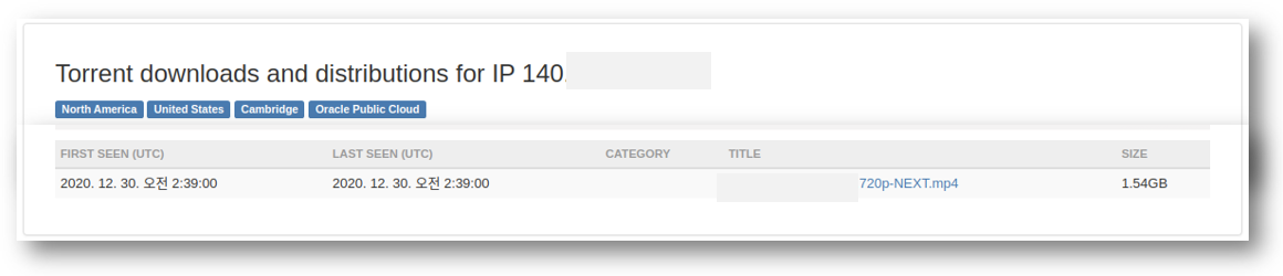 토렌트 파일을 다운로드나 배포하는 순간 IKnowWhatYouDownload 사이트에서 모니터링하는 토렌트 파일이라면 서버에서 IP 주소가 수집되고 저장되는 것으로 추정됩니다. 즉, 토렌트를 사용하면 100% 확률로 IP 주소가 수집되는 것은 아니만 해당 사이트가 수집 중인 6백만 중 하나라도 다운로드했다면 IP가 등록되고 토렌트 사용 내역을 타인이 검색할 수 도 있습니다.