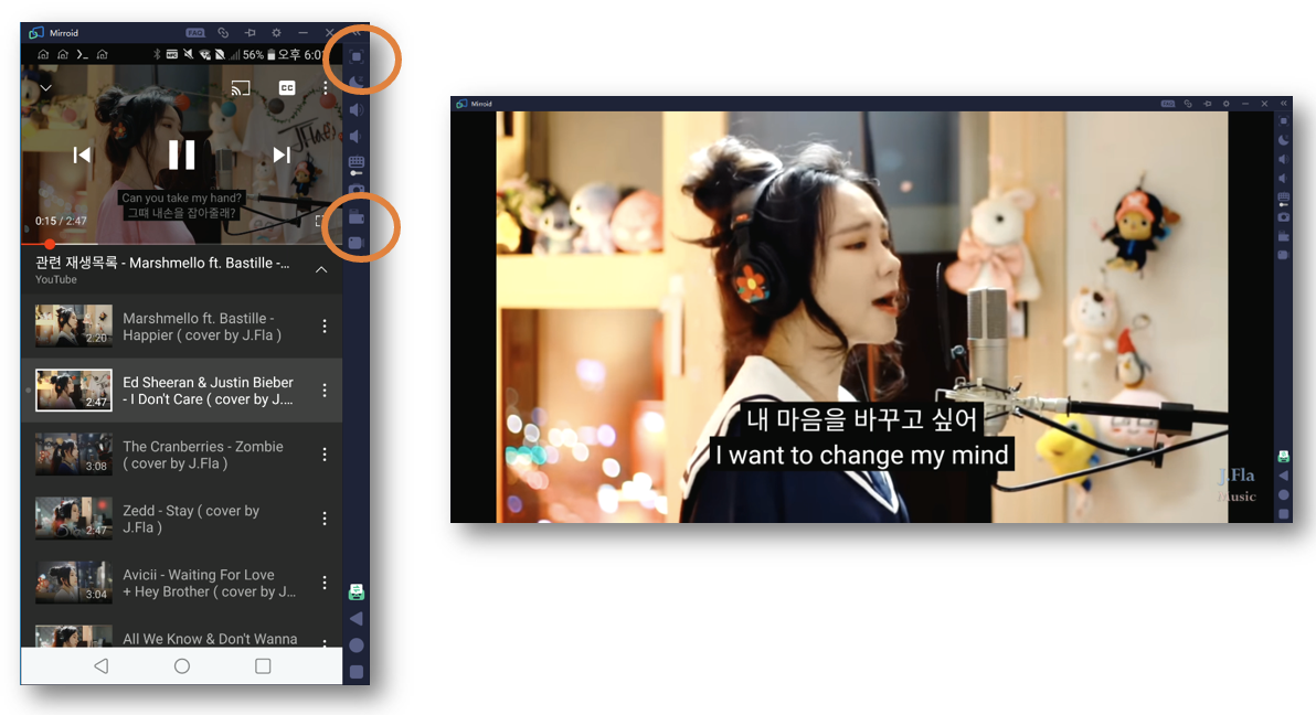 3.3. 가로/세로 전환, Full 화면 기능 - 스마트 폰 유튜브 영상을 PC 전체 화면으로 Play