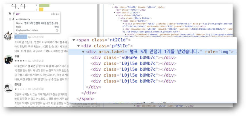 - Test Web Page: 유튜브 리뷰 https://play.google.com/store/apps/details?id=com.google.android.youtube&showAllReviews=true