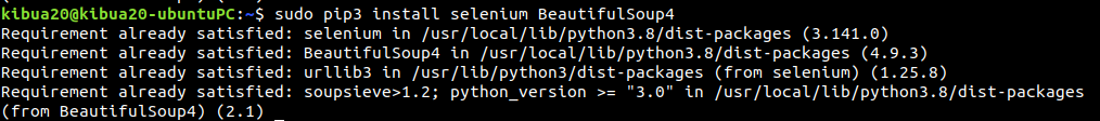 Python Crawling 에 필요한 모듈을 설치합니다. Python 모듈 및 WebDriver에 설치에 관련된 내용은 이전 포스팅을 참고하세요. BeatifulSoup 모듈은 Version 4를 설치해야 합니다.