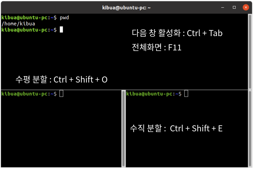 - 터미네이터 종료 : Ctrl + Shift + Q