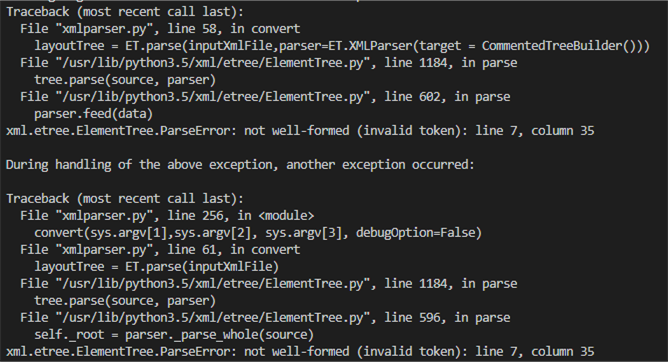 xml.etree.ElementTree.ParseError: not well-formed (invalid token): line 122, column 43