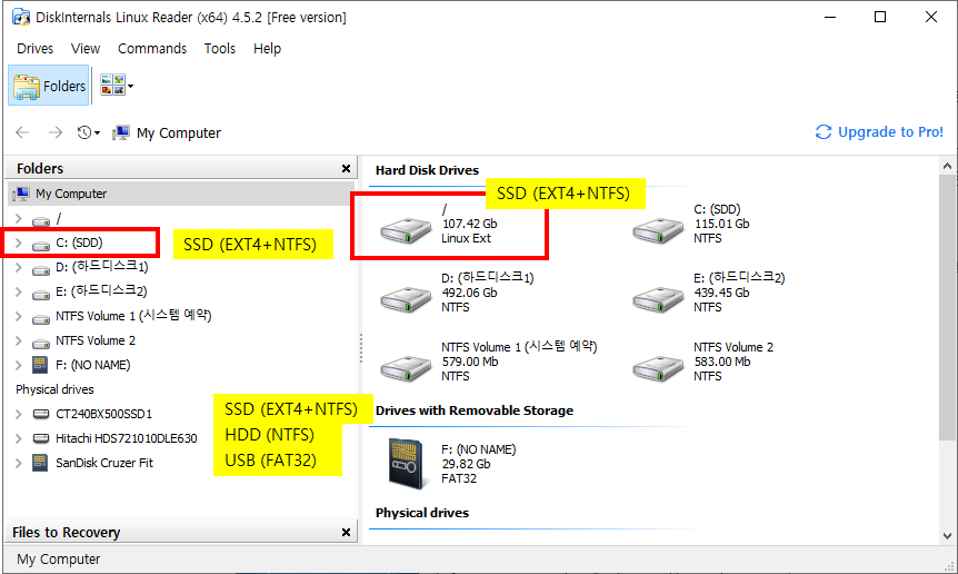 우분투에서 NTFS, FAT32을 READ/WRITE 가능하도록 쉽게 마운트 할 수 있어 간단하게 해결이 가능하지만, Windows 에서 우분투의 EXT4 파일을 접근할 수 있는 방법을 찾아야 한다.