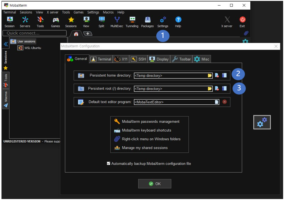 2. MobaXterm 설치 후 Home 폴더와 root (/) 폴더 설정
