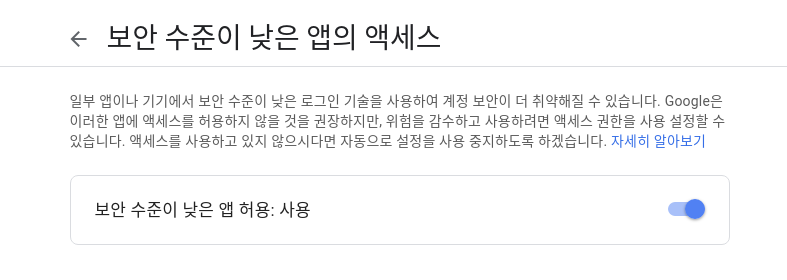 구글 계정: https://myaccount.google.com/lesssecureapps